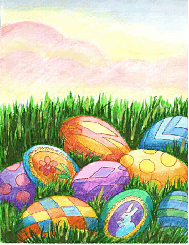 Die Eier sind so gut versteckt, sehn prächtig aus und bunt gefleckt, mal sehn ob man sie alle findet,